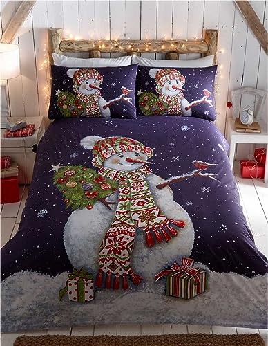 Kampala Hill Vintage Snowman Bedding Festive Christmas Xmas Duvet Cover Set Single