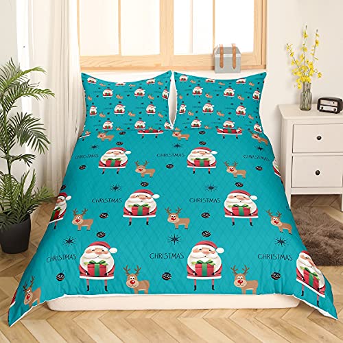 Santa Claus Duvet Cover Christmas Deer Bedding Set for Kids Boys Girls Winter Snowflake Comforter Cover Merry Christmas Khaki Teal Blue Bedding & Linen 2Pcs Single Size