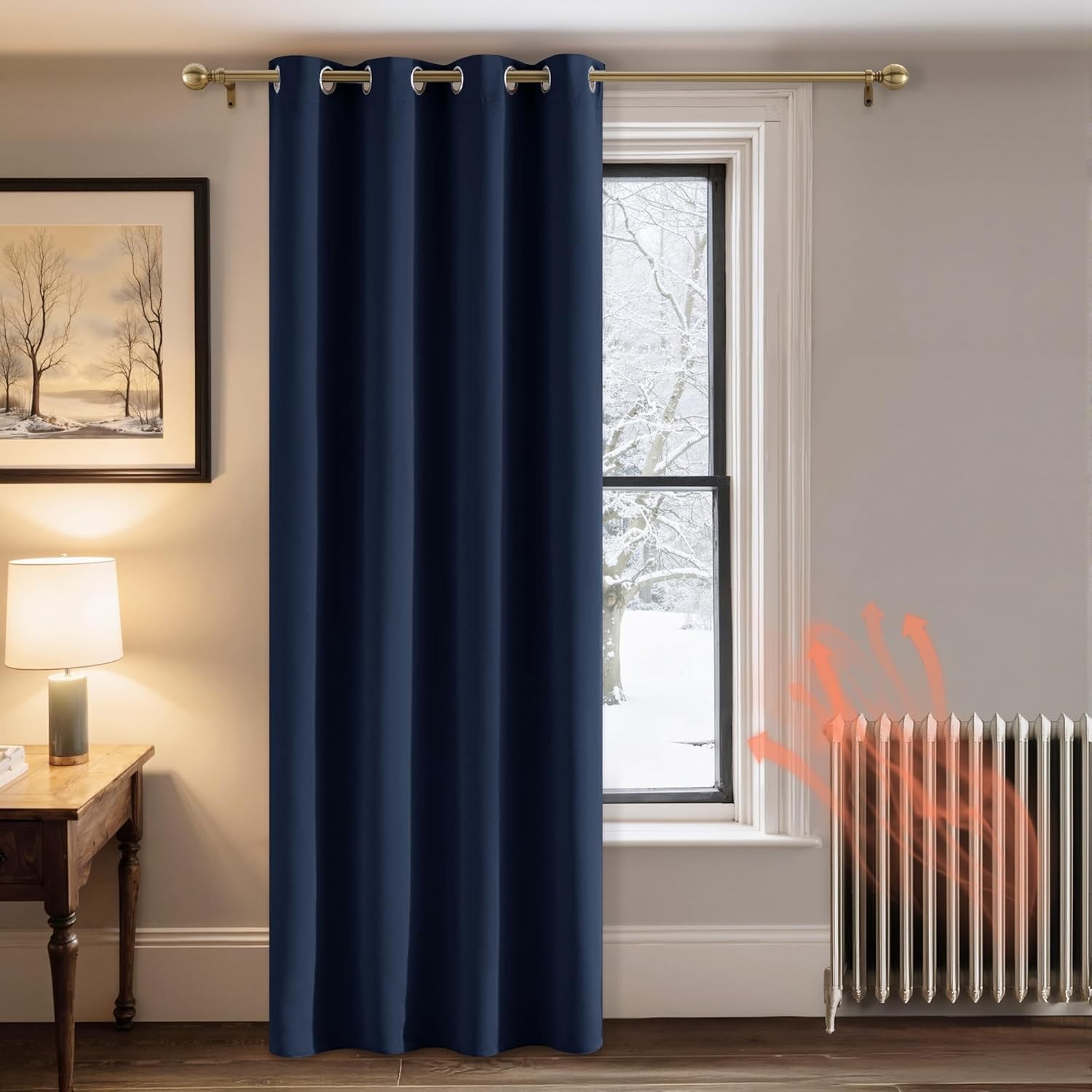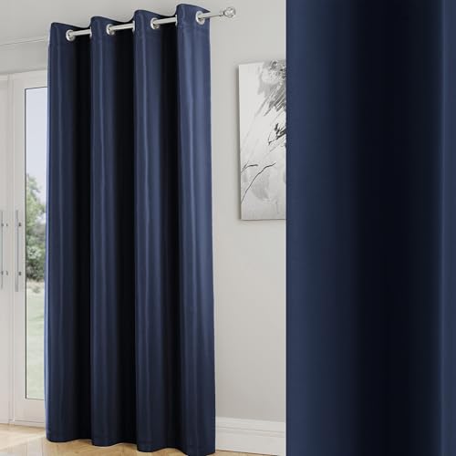 (Navy , 66" Width x 84" Drop - (168cm width x 213cm drop) Single Panel Door Curtain.) Insulated Blackout Curtains Ready Made Eyelet Curtain Panels UK