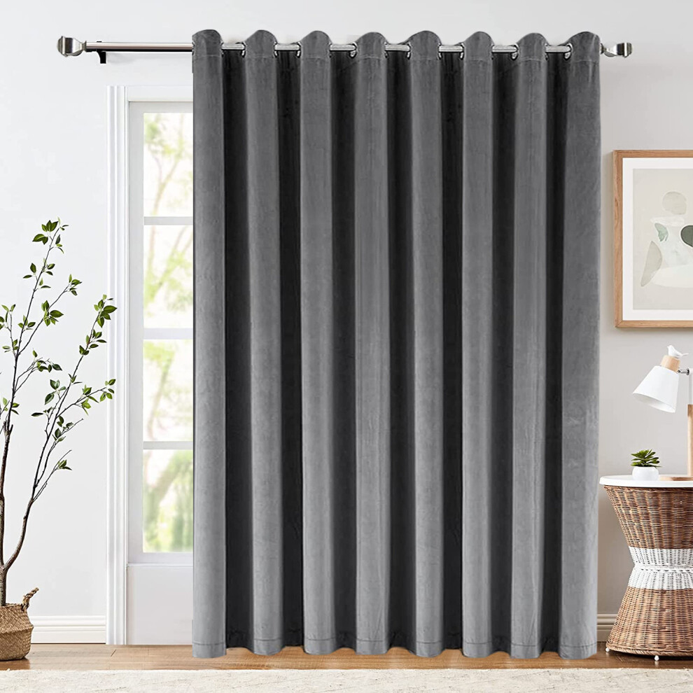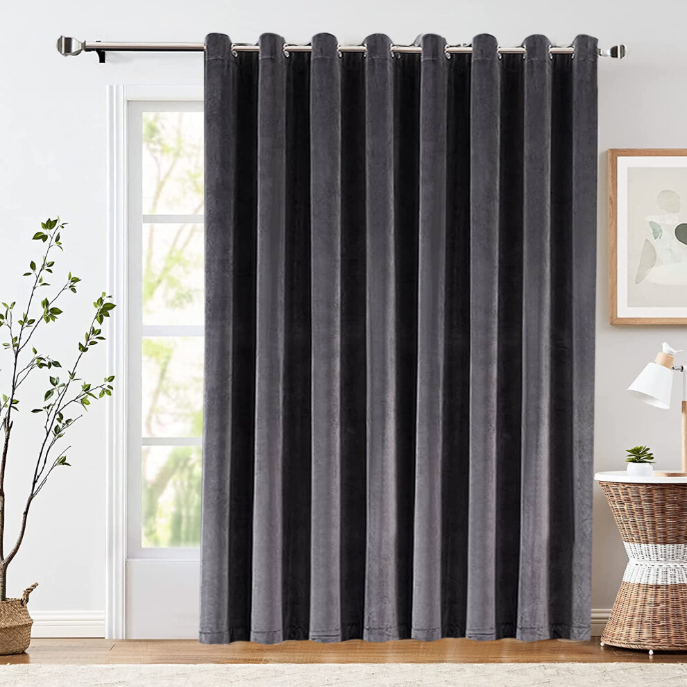 (Grey, 66" X 84" Single Panel Door Curtain) Thermal Insulated Curtains Ringtop Eyelet Velvet Crushed Curtain Pair with 2 Tiebacks
