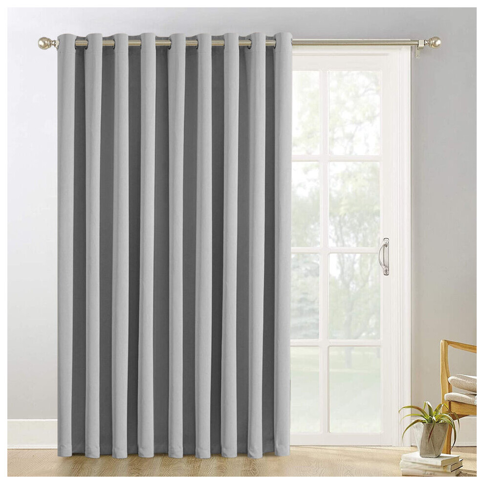 (Grey, 66" X 84" - (168cm x 210cm)-Single Panel Door Curtain.) Thermal Insulated Curtains 100% Blackout Ring-Top Eyelet Curtain Panel with Tiebacks