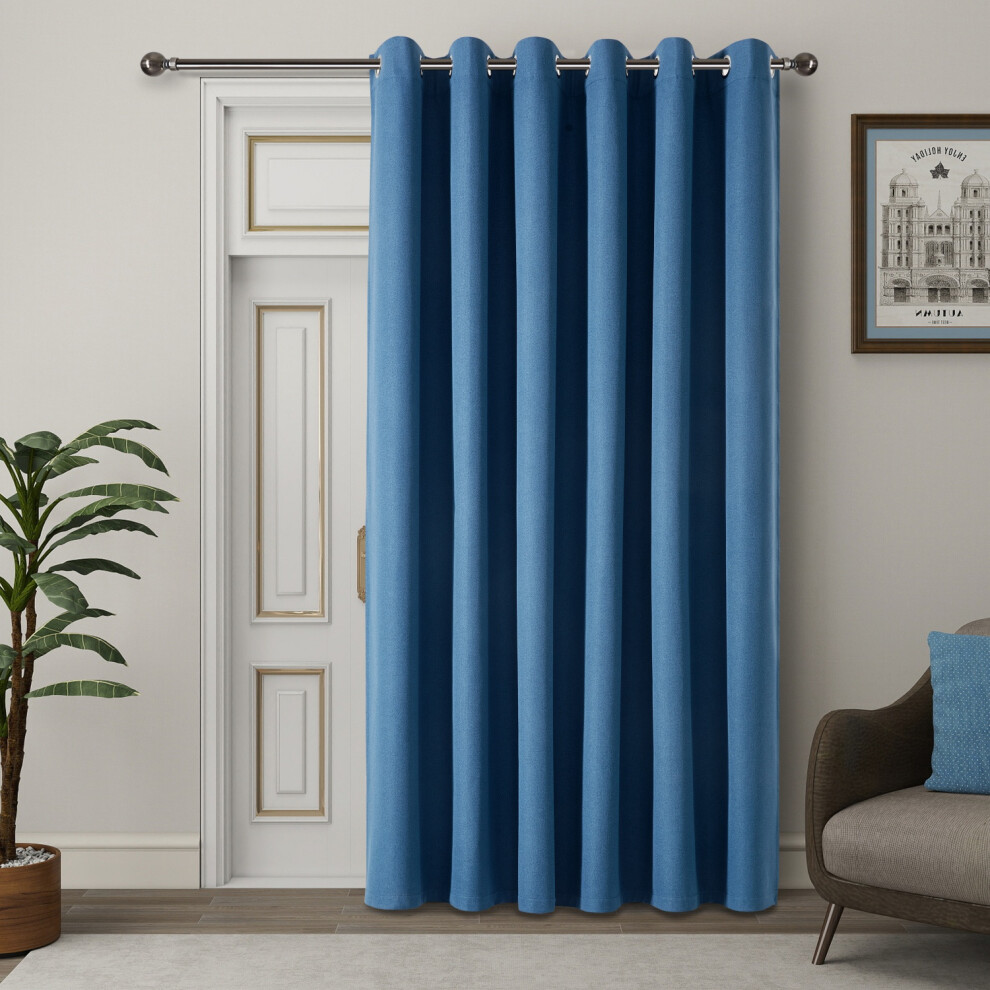 (Blue, 66" X 84" - (168cm x 210cm)-Single Panel Door Curtain.) Thermal Insulated Curtains 100% Blackout Ring-Top Eyelet Curtain Panel with Tiebacks