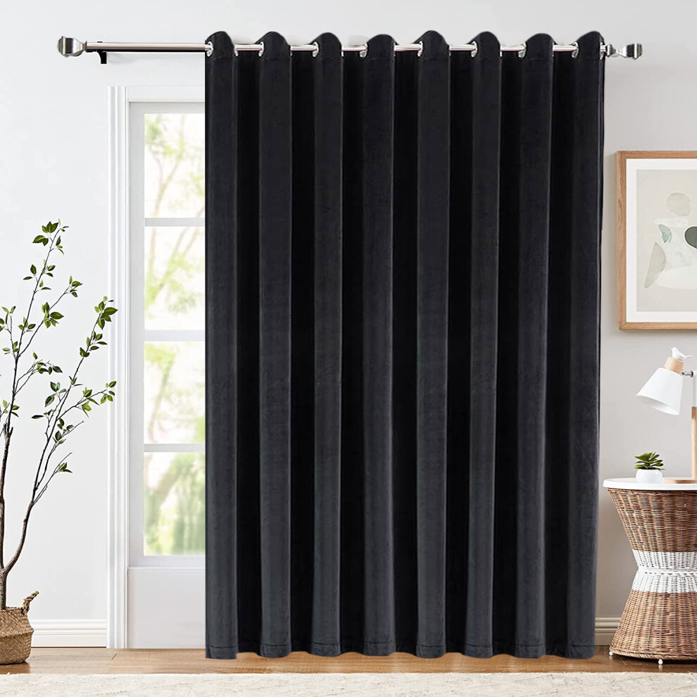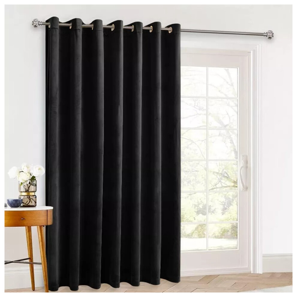 (Black, 66" X 84" Single Panel Door Curtain) Thermal Insulated Curtains Ringtop Eyelet Velvet Crushed Curtain Pair with 2 Tiebacks