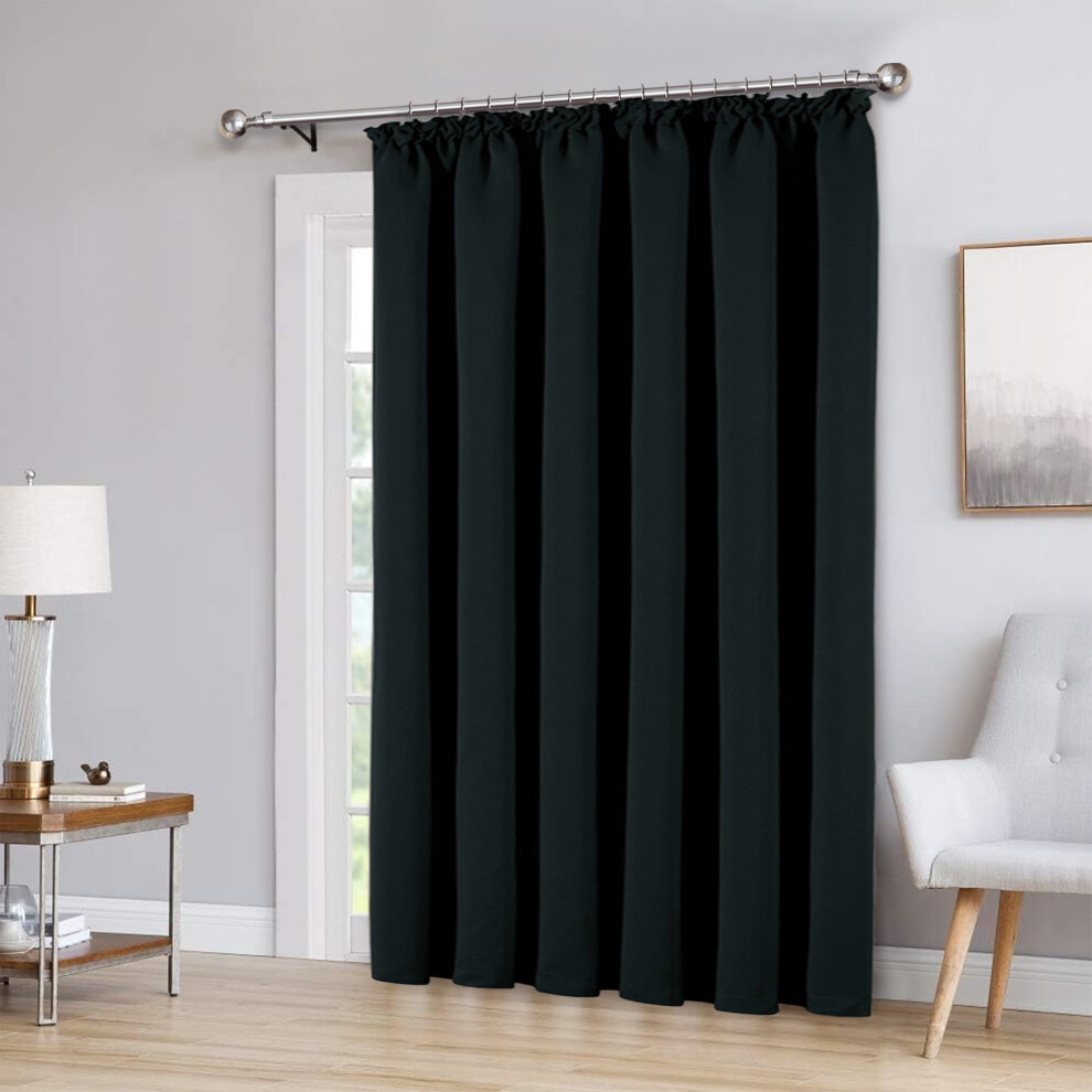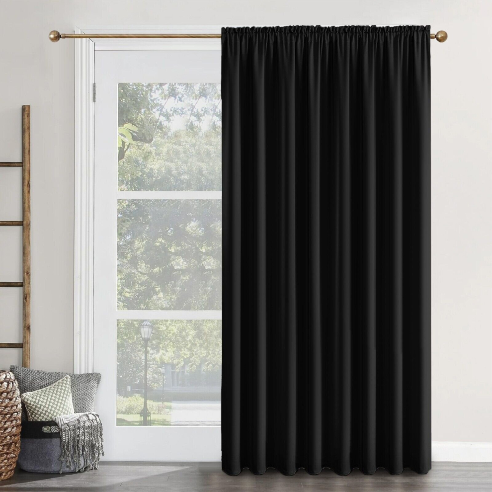 (Black, 66" x 84"-Single Panel Door Curtain) Thermal Insulated Curtain 100% Blackout Curtains Pencil Pleat Ready Made Pair of Curtain Panel with Tie B
