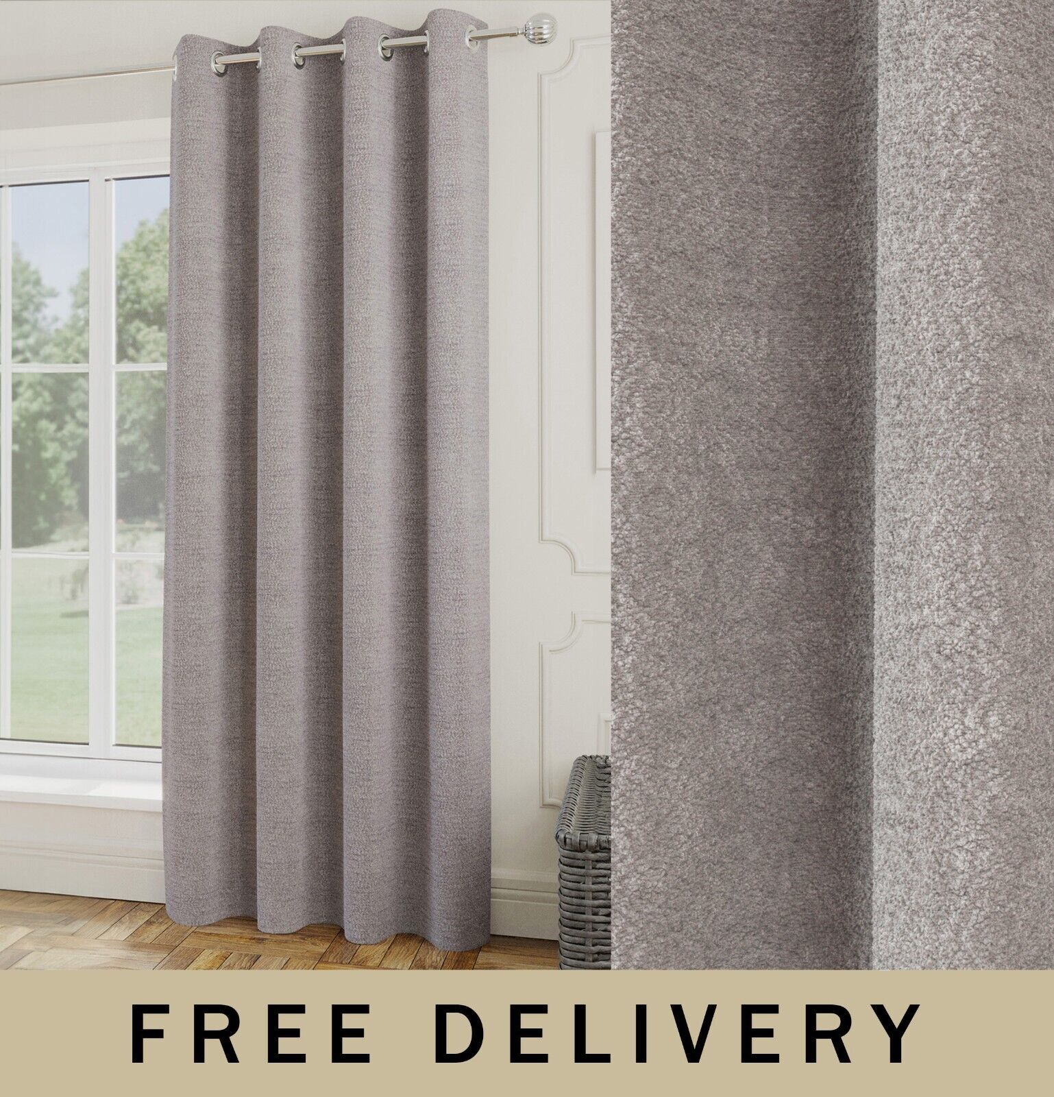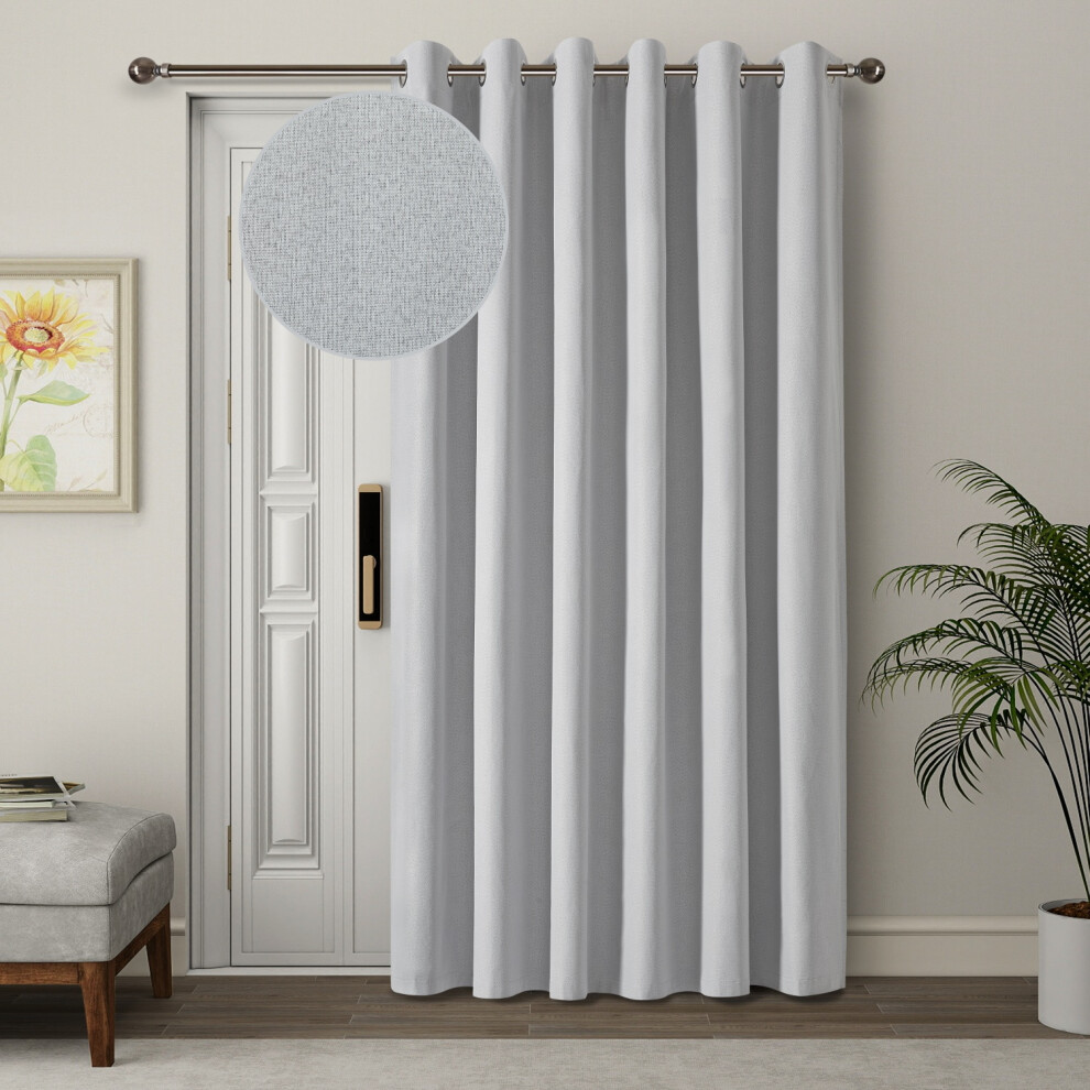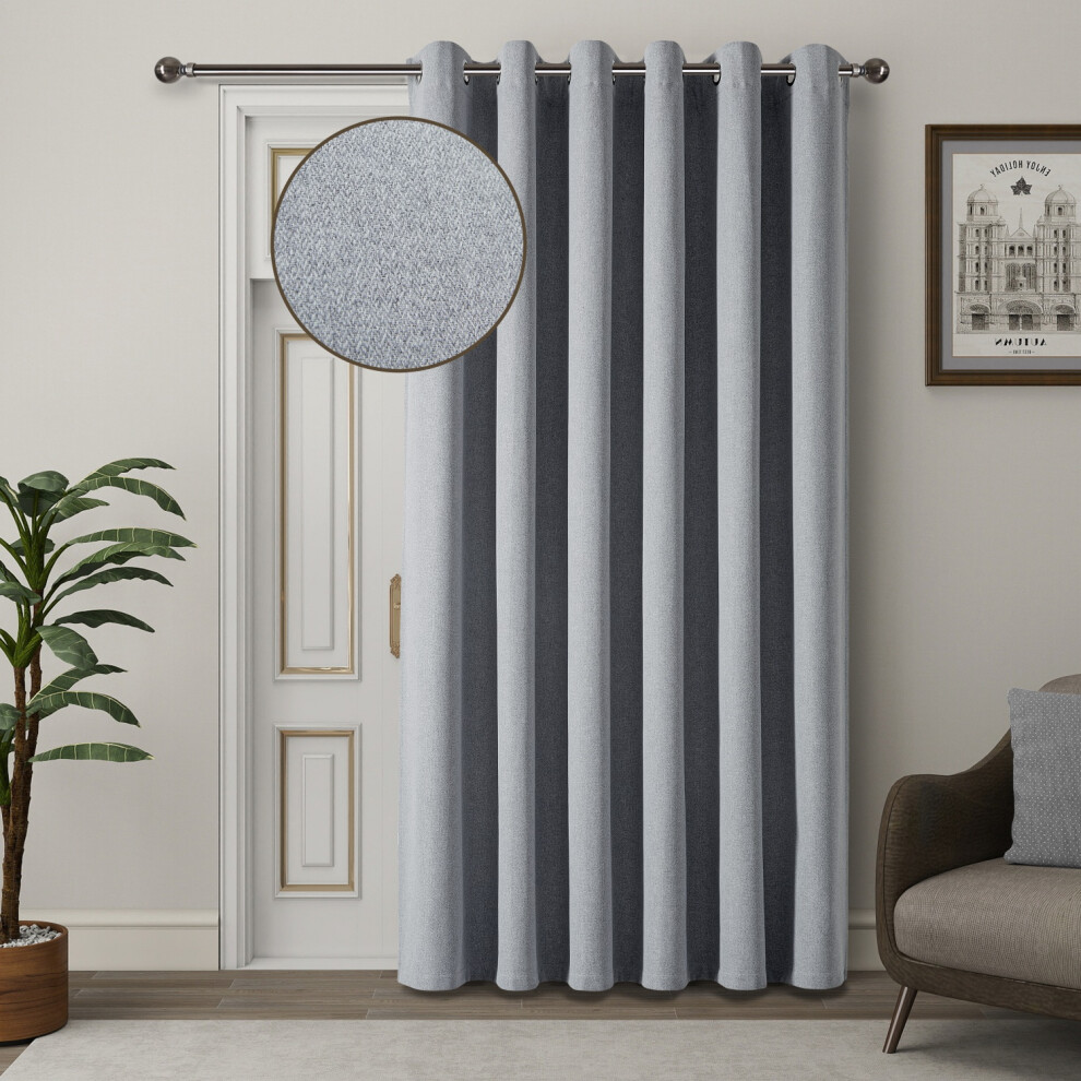 Royale Silver Boucle Room Darkening Readymade Boucle Single Eyelet Door Curtain