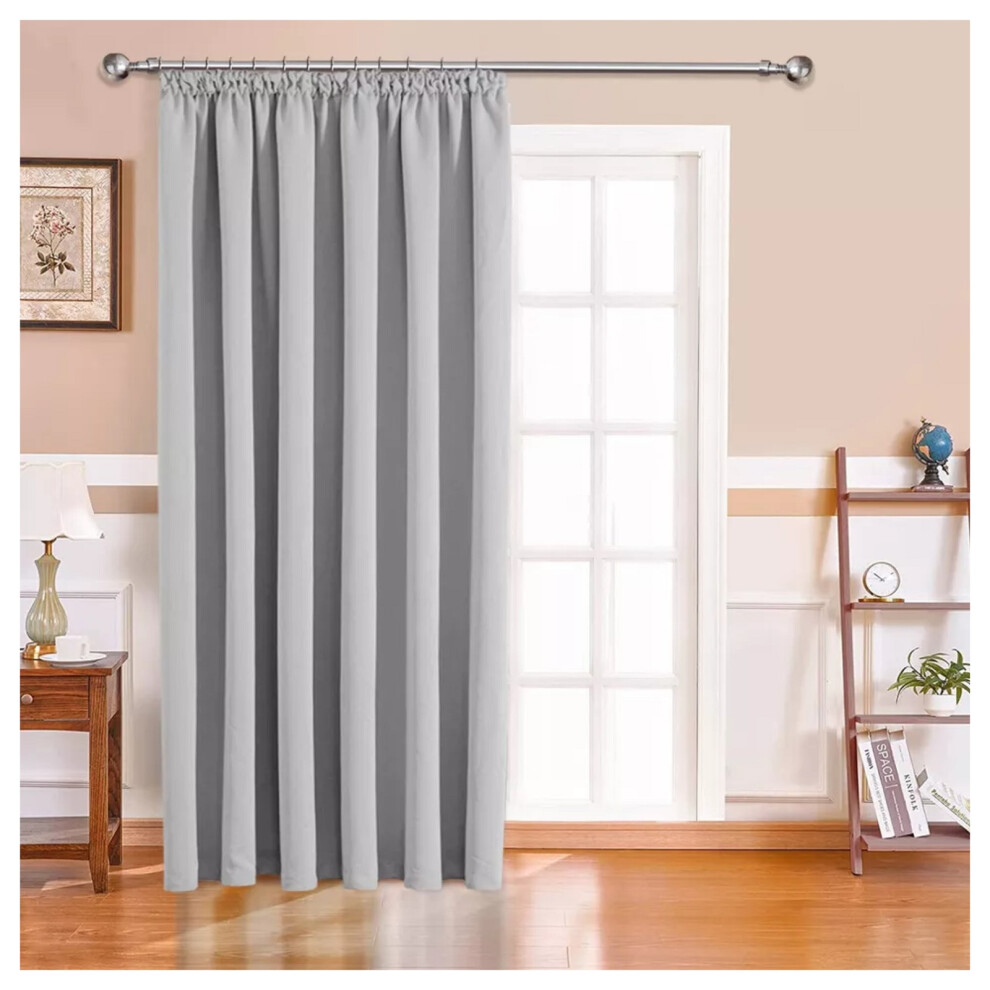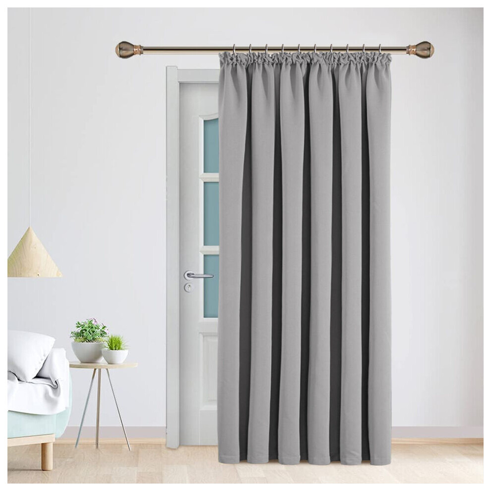 (Silver Light Grey, 66" x 84"-Single Panel Door Curtain) Thermal Insulated Curtain 100% Blackout Curtains Pencil Pleat Ready Made Pair of Curtain Pane