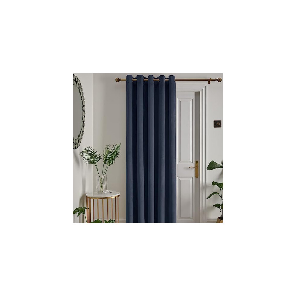 - Montrose - Velvet Blackout Eyelet Single Panel Door Curtain - 66" Width x 84" Drop (168 x 214cm) in Navy