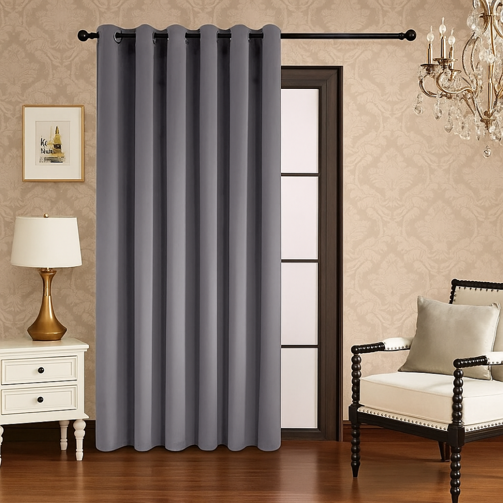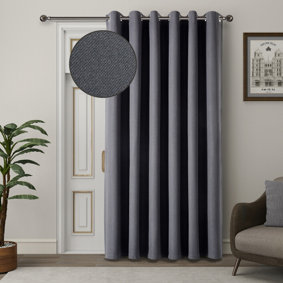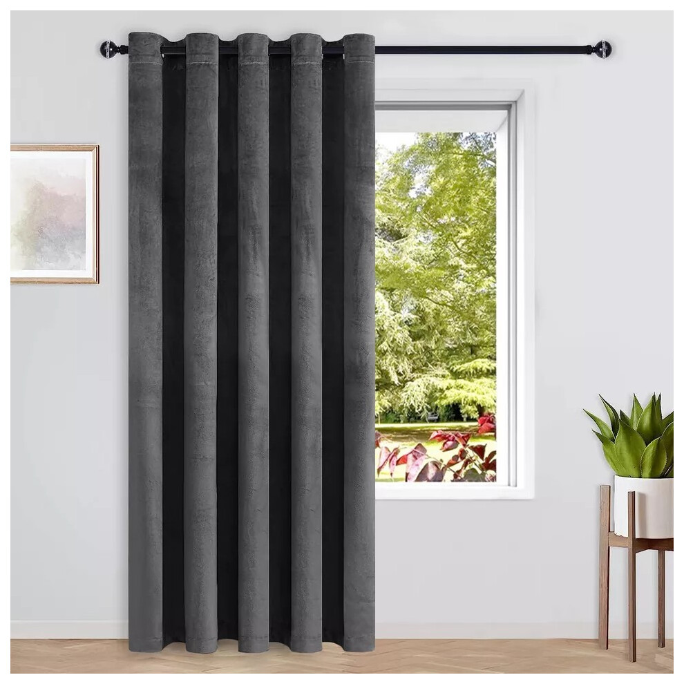 Enhanced Living Nightfall Plain Supersoft Grey Thermal Blockout Single Eyelet Door Curtain - 66 x 84 inch (168 x 214cm) - Energy Saving & Noise Reducing Door Curtain for Living Room & Bedroom