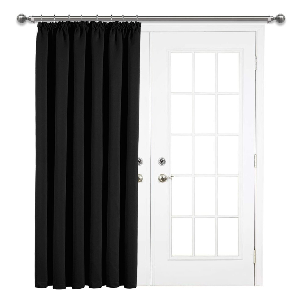 (66 x 84 inch (5.5ft x 7ft)-Single Panel Door Curtain, Black) Blackout Pencil Pleat Curtains with Tie Backs-Thermal Insulated Curtain for Bedroom Livi
