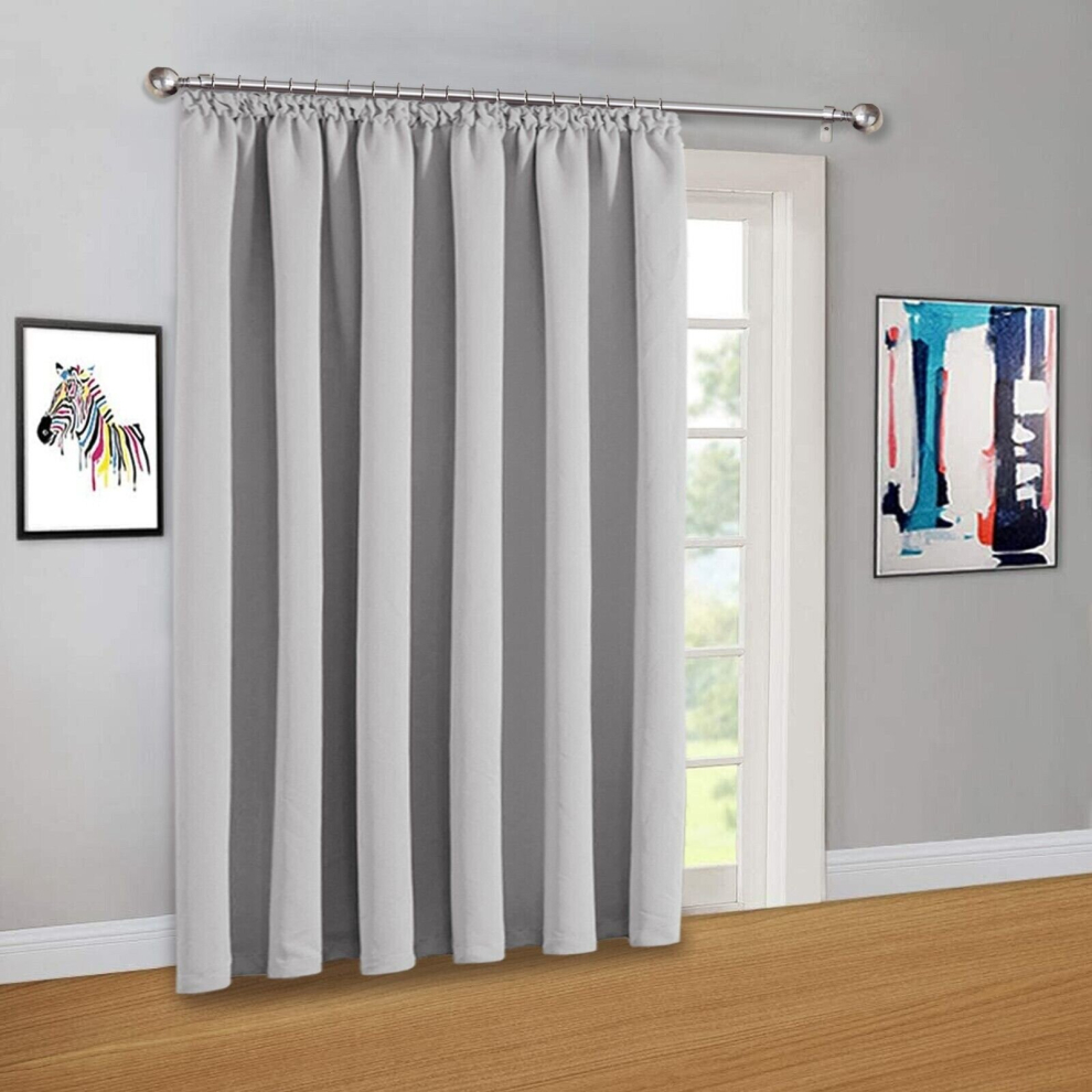(66'X84" (Single Panel Door Curtain), Silver) Blackout Pencil Pleat Curtains & Drapes Ready Made