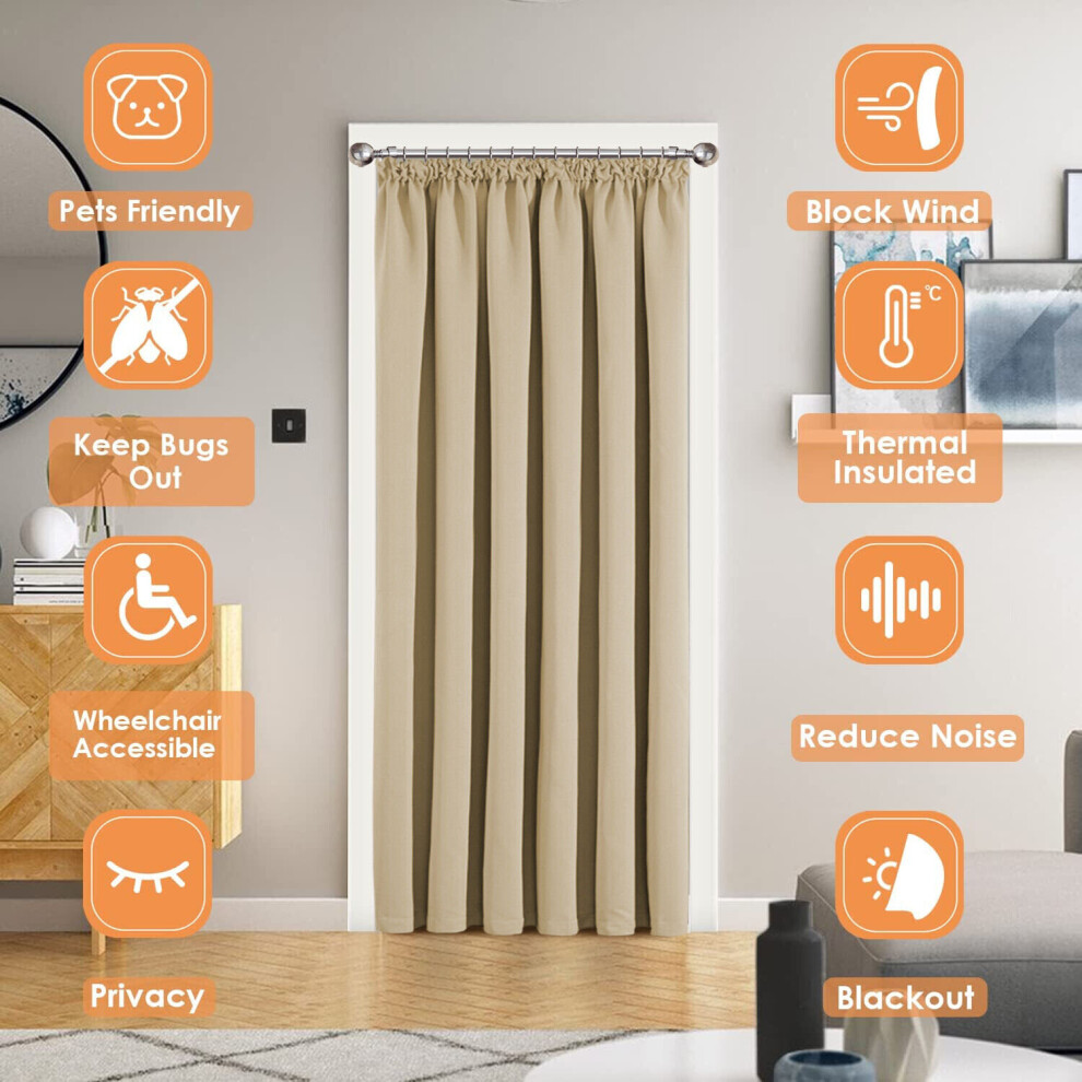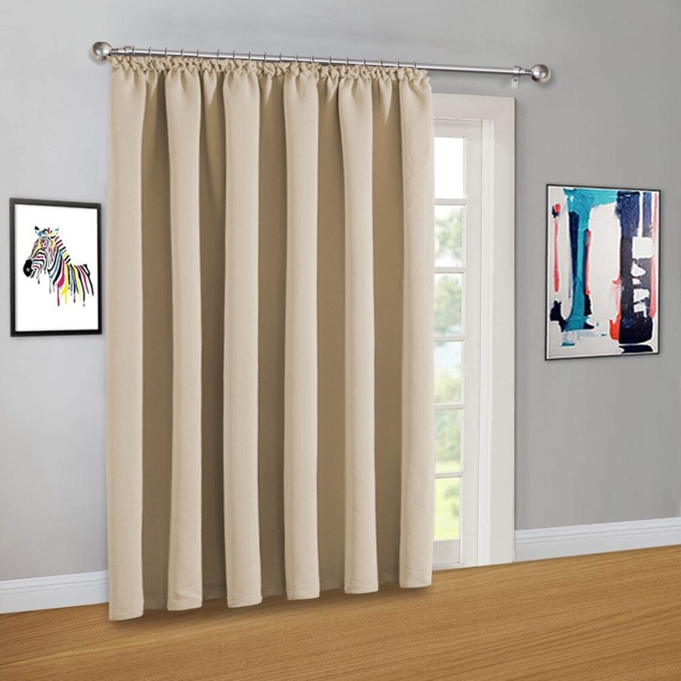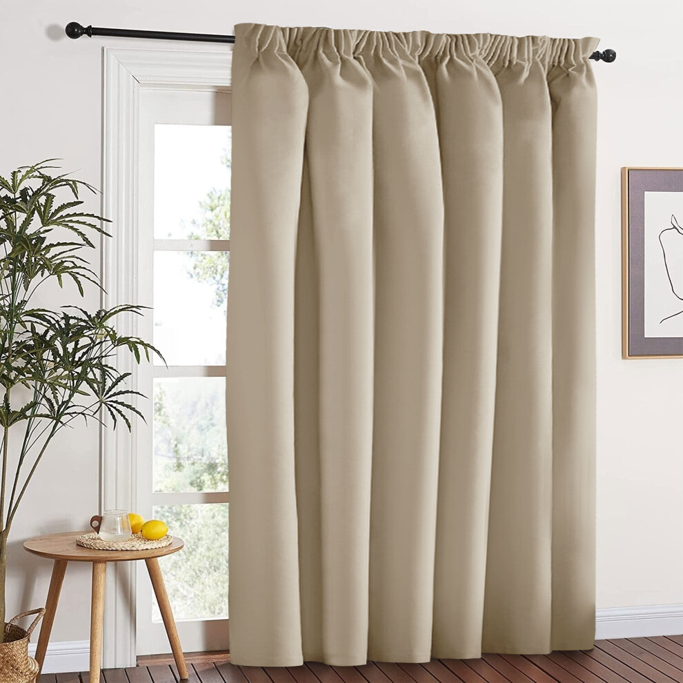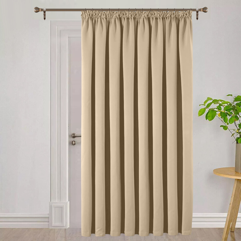(66'X84" (Single Panel Door Curtain), Beige) Blackout Pencil Pleat Curtains & Drapes Ready Made