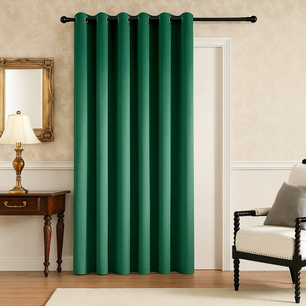 (Velvet Green) Blackout Door Curtain Velvet Embossed & Plain Single Panel Door Curtain with Tie Back