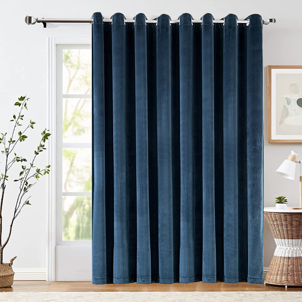 (Plain Blue Navy) Blackout Door Curtain Velvet Embossed & Plain Single Panel Door Curtain with Tie Back