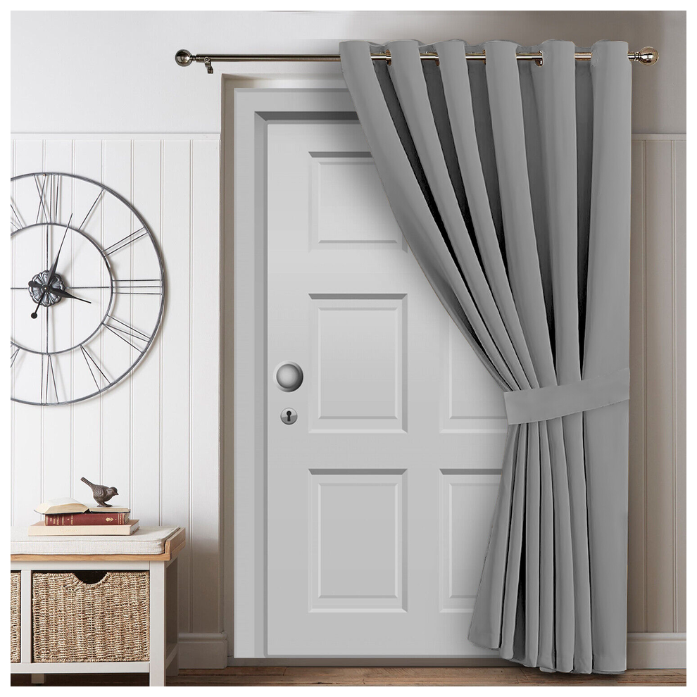 (Light Grey , 66" Width x 84" Drop - (168cm width x 213cm drop) Single Panel Door Curtain.) Insulated Blackout Curtains Ready Made Eyelet Curtain Pane
