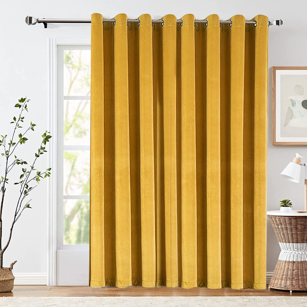 (Mustard, 66" X 84" Single Panel Door Curtain) Thermal Insulated Curtains Ringtop Eyelet Velvet Crushed Curtain Pair with 2 Tiebacks