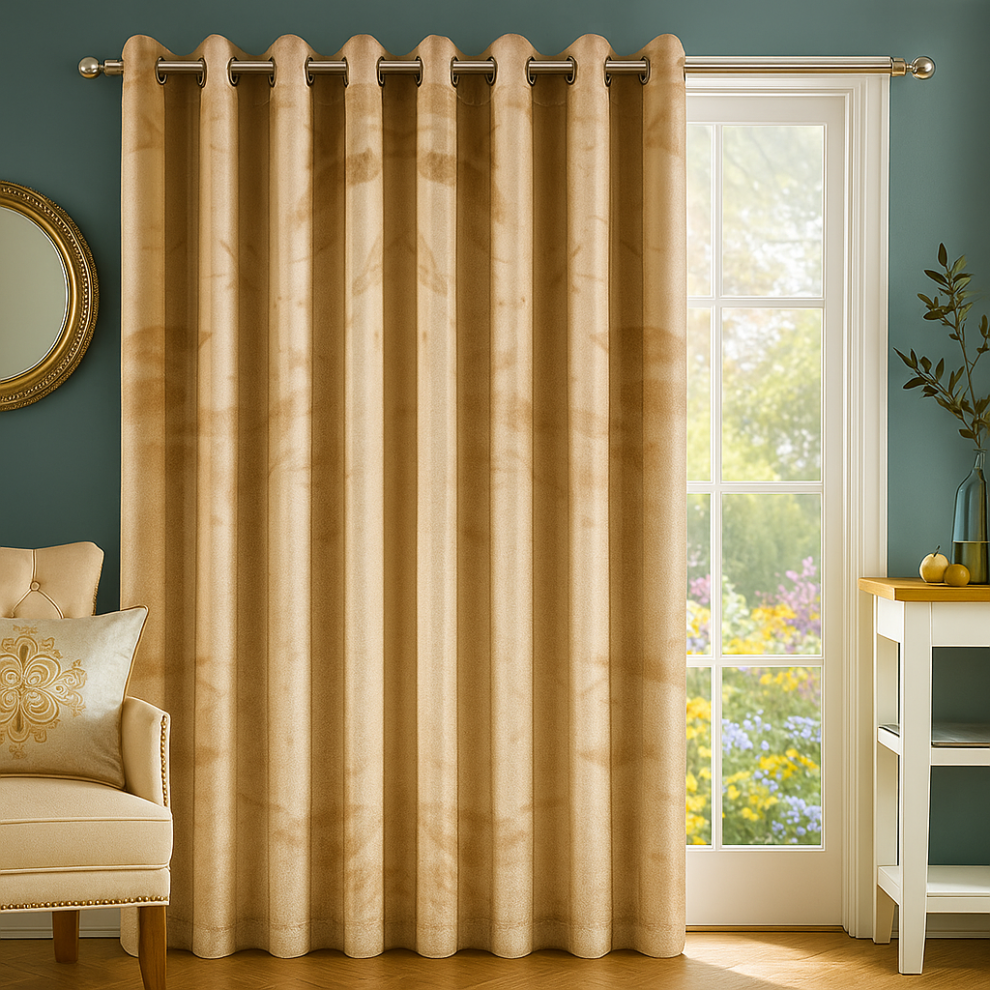 (Beige, 66 x 84 in (5.5ft x 7ft) - Single Panel Door Curtain) Crushed Velvet Eyelet Curtains - Readymade Lined Drapes for Bedroom & Living Room