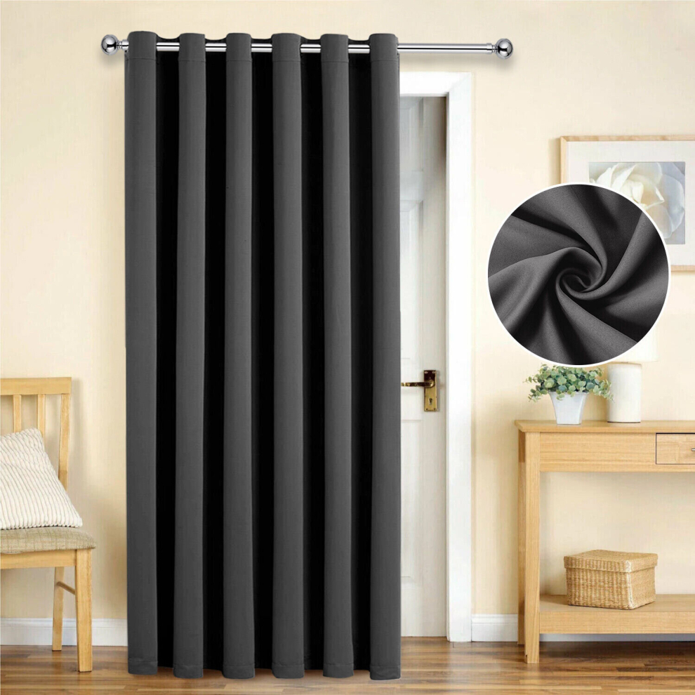 (Dark Grey , 66" Width x 84" Drop - (168cm width x 213cm drop) Single Panel Door Curtain.) Insulated Blackout Curtains Ready Made Eyelet Curtain Panel