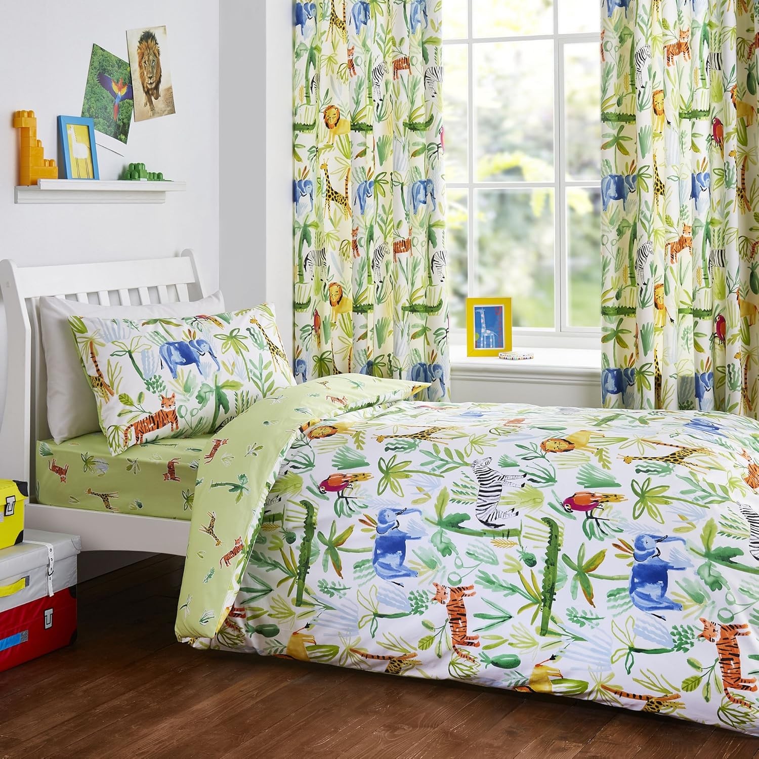 Bloomsbury Mill - Kids Single Duvet Cover Set - Childrens Single Bedding for Boys and Girls - Safari Adventure - Jungle Animals Single Bed Duvet Cover Set with Pillow Case - 135x200cm