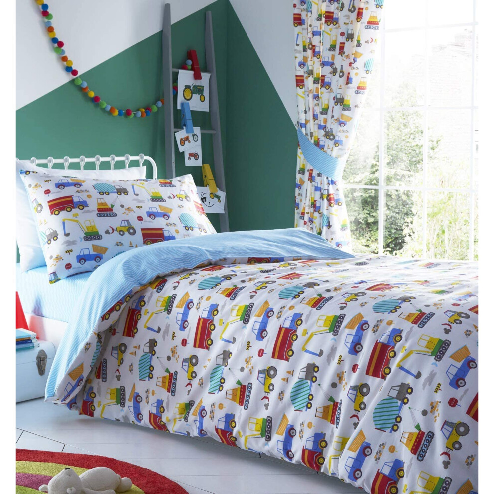 Kidz Club Bright Trucks Childrens Diggers Single Duvet Cover Reversible Bedding Set