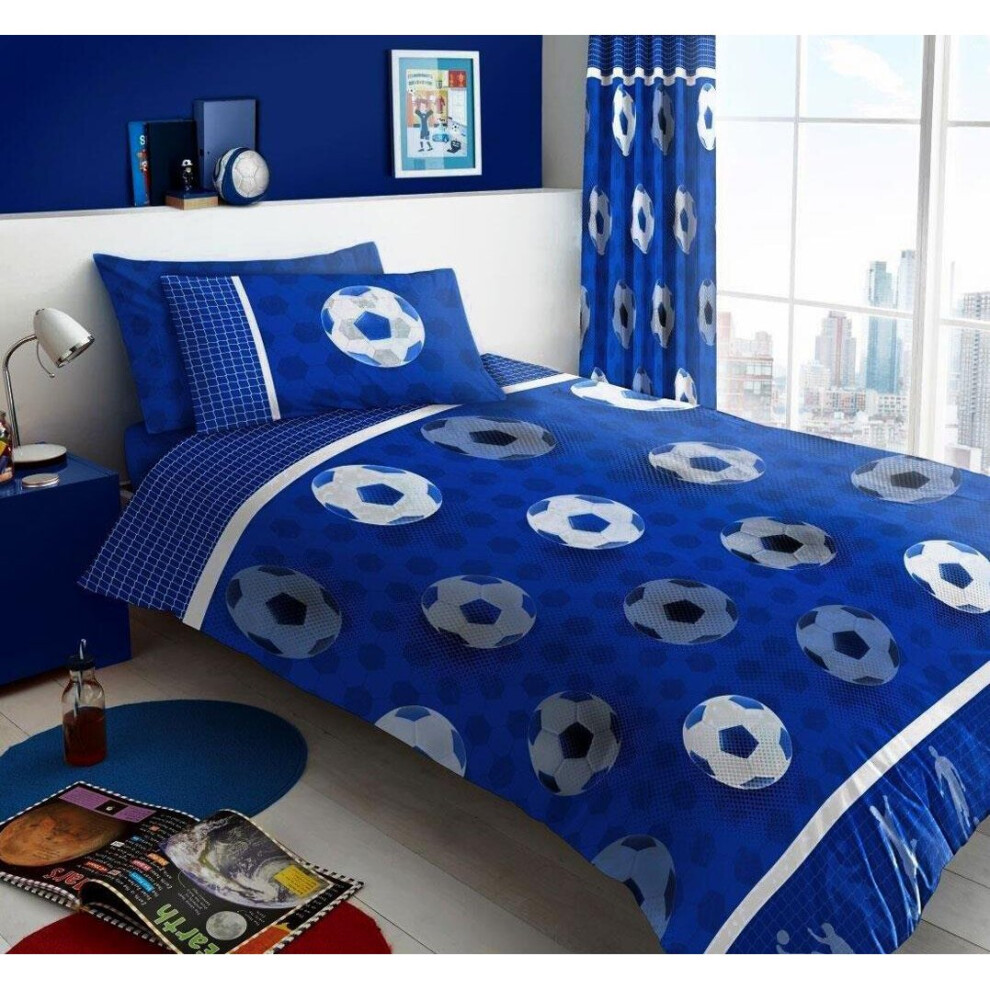 (Blue, Single - Duvet Cover/Pillow Case) Football team bedding duvet quilt cover / sheet set kids childrens boys girls