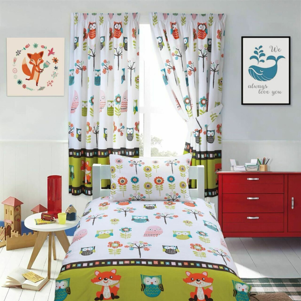 (Single) Curtain & Duvet Cover Set Childrens Country Owl