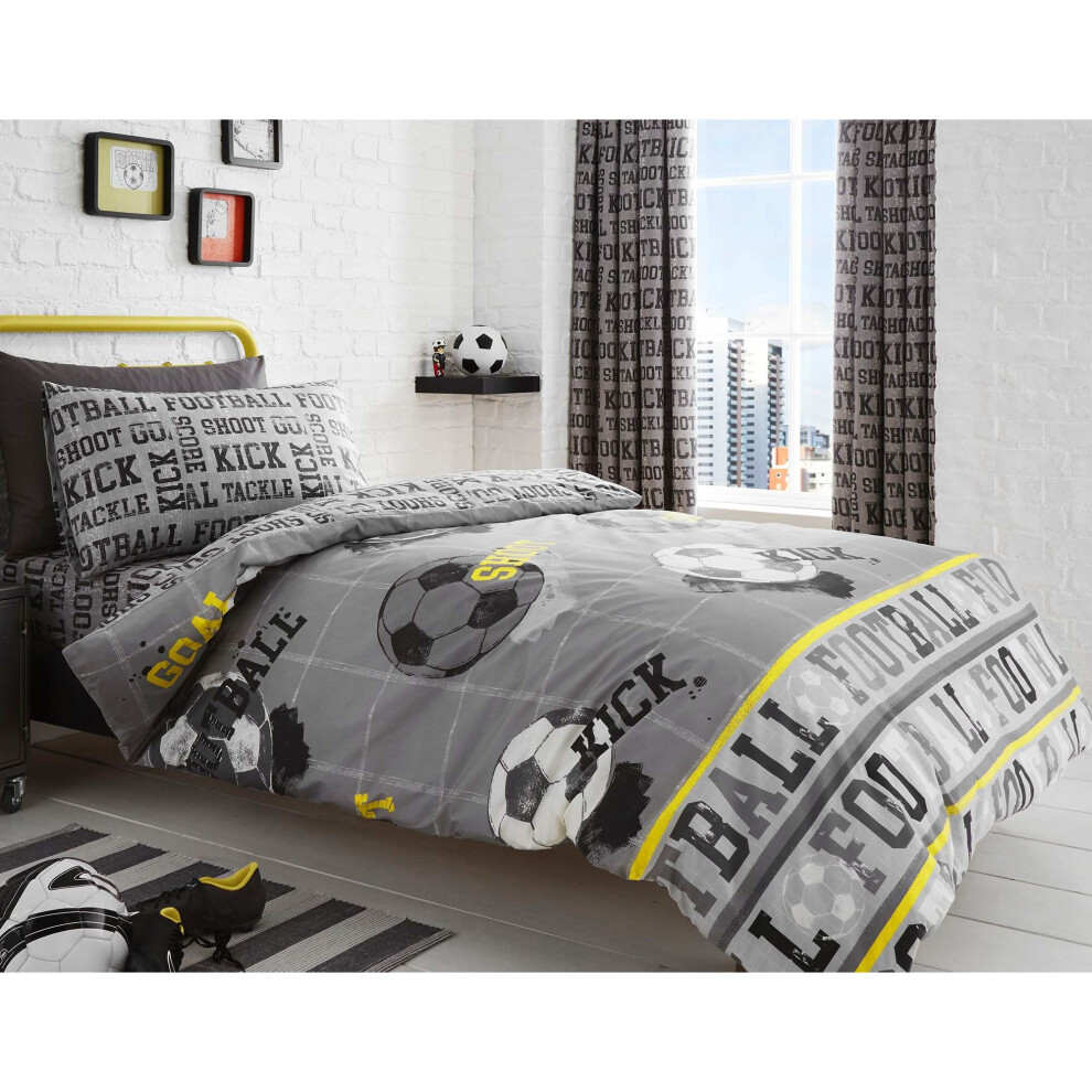 Bedlam - Football - Childrens Duvet Cover Set | Single Bed Size | Grey & Yellow