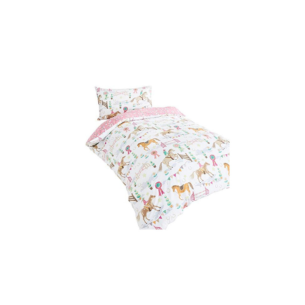 UNICORN DUVET SET PINK PONIES CHILDRENS BEDDING SINGLE COUNTRYSIDE *FREE POST*
