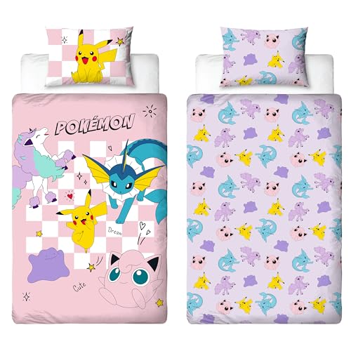 Pokémon Officially Licensed Single Kids Duvet Cover Set | Spirit Design Reversible 2 Sided Bedding with Matching Pillowcase | Childrens Single Bed Set | Polycotton