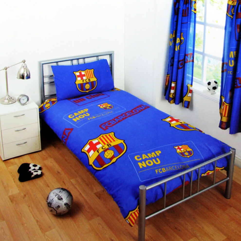 FC Barcelona Childrens/Kids Official Patch Football Crest Single Duvet Set (Single) (Blue)