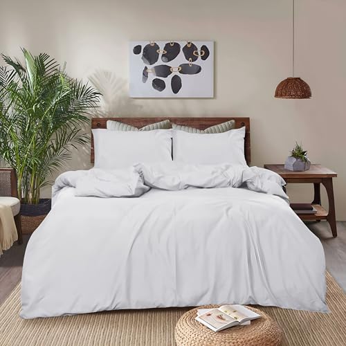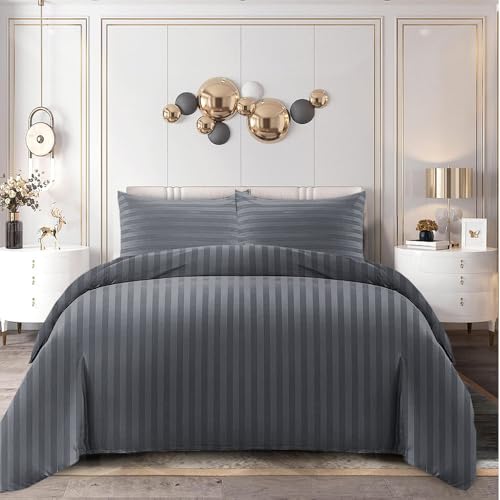 Home In Style 4U Single Duvet Cover Sets Grey Bedding with Satin Stripes-Reversible Hotel Bedding Duvet Cover Set with Pillowcases, Ultra Soft Breathable Hypoallergenic Quilt Bed Covers