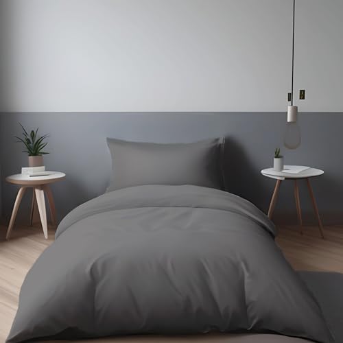 REHAN & CO Single Duvet Cover Sets – Soft Brushed Microfiber Bedding – Plain Quilt Cover With Pillow Cases (Charcoal Grey)