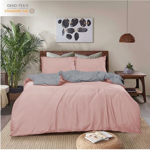 REHAN & CO Single Duvet Cover Sets – Soft Brushed Microfiber Bedding – Reversible Quilt Cover With Pillow Case (Blush/Grey)
