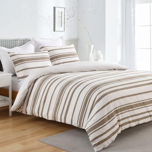 HORIMOTE HOME Chenille Single Duvet Cover Sets - Taupe White Striped Design, Thermal Warm Soft Quilt Cover Bedding Set with Pillow Case,137x200cm