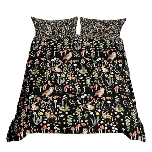 Homewish Vintage Floral Single Duvet Cover Sets, Cute Wild Animal Bedding Set for Kids Teens Adults, Owl Rabbit Fox Pattern Bedding & Linen, Aesthetic Botanical Flower Quilt Cover, 1 Pillowcase
