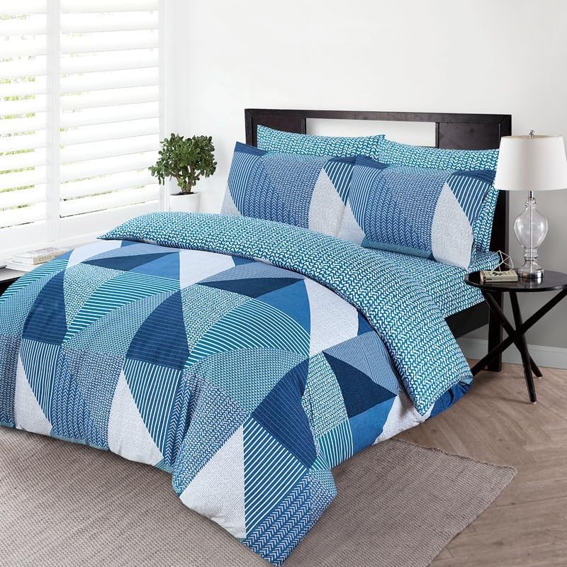 GC GAVENO CAVAILIA Single Duvet Cover Sets (150x200 cm) | Reversible Bedding & Linen Geometric Quilt Covers | Polycotton Single Bedding Sets | Washable Linen | Navy/Blue
