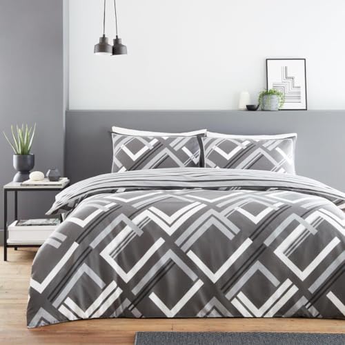 GC GAVENO CAVAILIA Single Duvet Cover Sets (150x200 cm) | Reversible Bedding & Linen Geometric Quilt Covers | Polycotton Single Bedding Sets | Washable Linen | Charcoal