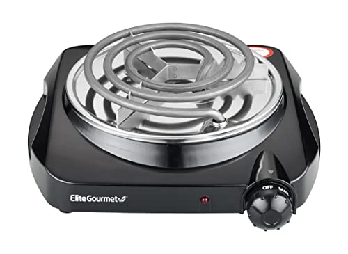 Elite Gourmet ESB301C Countertop Single Coiled Burner, 1100 Watts Electric Hot Plate, Temperature Controls, Power Indicator Lights, Easy to Clean, Black