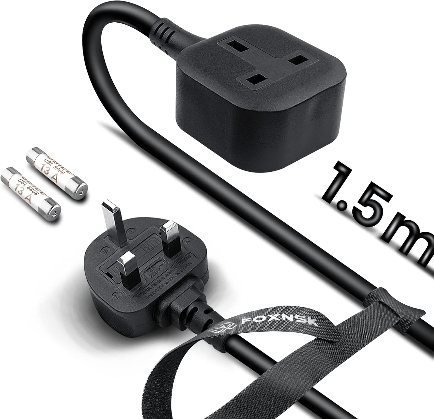 Single Plug Extension Lead 1.5m, 1 Gang Single Socket Extension Lead Surge Protected, 13amp 250V 3kw UK 3 Pin Fused Mains Single Extension Lead for