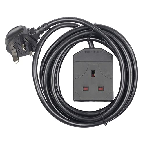 ExtraStar 1 Way Gang Single Socket Mains Power Extension Lead 13A UK 3Pin Plug - 3 Metre Cable, Black