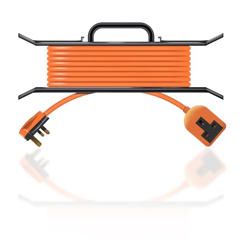 Eagle Single UK Plug to Socket Power Extension Lead Cable with H Frame Cable Tidy Reeler, Carry Handle, Orange Cable for DIY and Domestic Use 13 Amps 20m