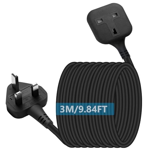 rhinocables IEC C13 Extension Cord Power Cable Lead with UK Pin Plug, Single Socket for Monitor, Kettle, PC, Computer Mains Power Supply, Black (3m)