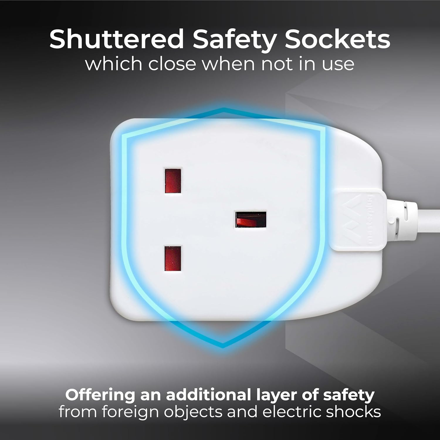 Single Extension Lead 2M, 1 Gang Plug Socket Surge Protected, 13Amp 250V 3Kw UK