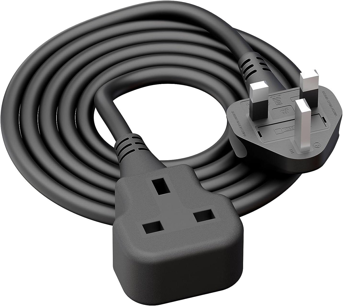 1 Meter Short Extension Lead Single Plug Socket Power Cable Heavy Duty 13 Amp