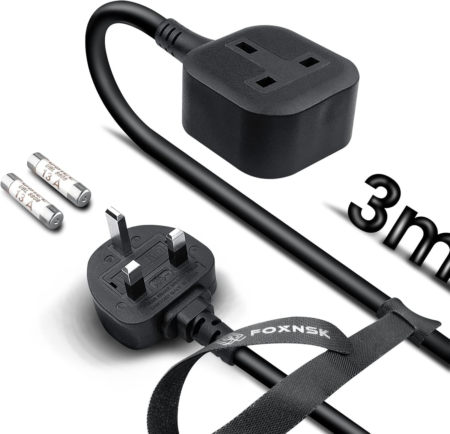FOXNSK Single Plug Extension Lead 1.5M, 1 Way Gang Single Socket Extension Le...