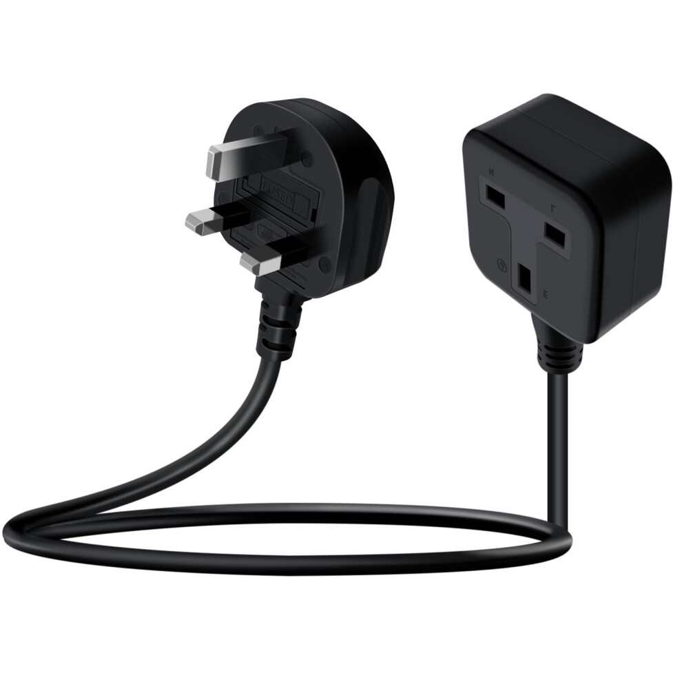 HITRENDS 2-Pack 1 Way Extension Lead 1M, Single Socket Extension Lead, UK 3 Pin Plug Power Strip(13A,3250W Max), Sturdy Plug Extension for Travel, Ho
