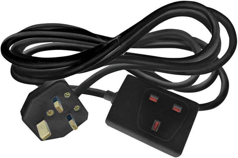Single Extension Lead 6ft Cord Travel Power Cable 13 Amp Outdoor Plug Socket Heavy Duty Small Electrical Socket Black