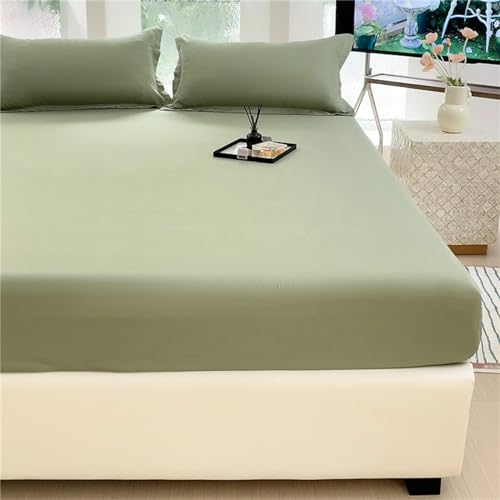 DOTBUY-SHOP King Size Fitted Sheets Double Fitted Sheet Solid Colour Bed Sheets Extra Deep Pocket 30 cm Microfiber Milled Double Bed Sheet Soft Fade Resistant (Army green,Single)
