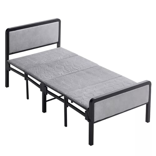 MY HOMIE Foldable Bed Premium Grey Single Guest Beds, Single Folding Bed Compatible with Mattress, Compact and Space Saving Fold Up Camp Beds, Portable Trundle Beds for Adults