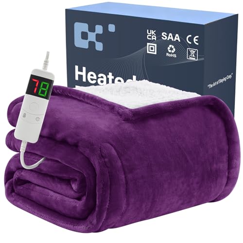 BOMOVA Electric Heated Blanket Single Throw (130x160cm,Purple)-Flannels Fleece Winter Warm Blanket,10-Level Heating & 5 Auto Timer,Cozy Sofa Throw for Home Office,Xmas House Warming New Home Gifts