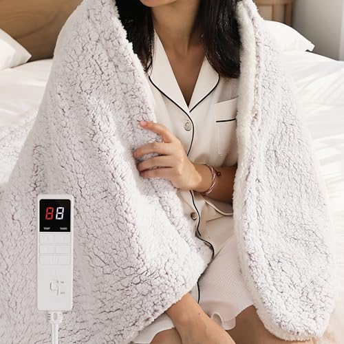 LANDING DREAM Electric Heated Blanket Single 120x160cm to Keep Body Warm Machine Washable Soft Jacquard Sherpa Throw 4 Heat Levels 8 Hours Auto Off Timer LED Display Fast Heating for Home Office Use